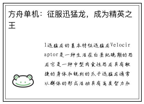 注册领取38元2. 驯服迅猛龙的必备条件
